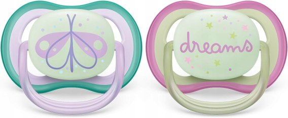 Świeci w ciemności: użyj przycisku Philips Avent ultra airs, który świeci w ciemności przez długi czas, aby szybko znaleźć smoczek dziecka bez włączania światła
