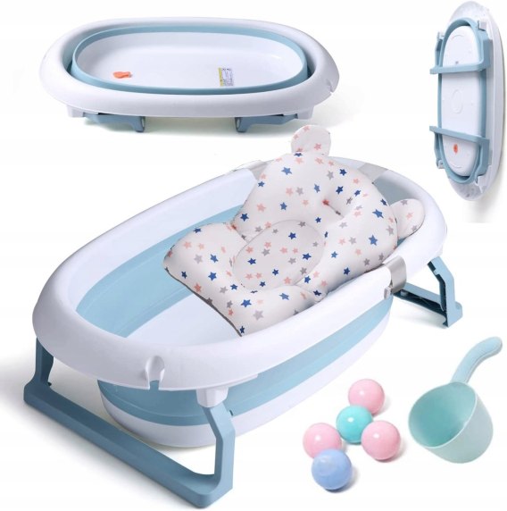 PAKIET ZAWIERA: 1 x wanienka składana, 1 x poduszka do kąpieli dla niemowląt, 1 x kubek do kąpieli dla dzieci, 4 x kulki dla dzieci
