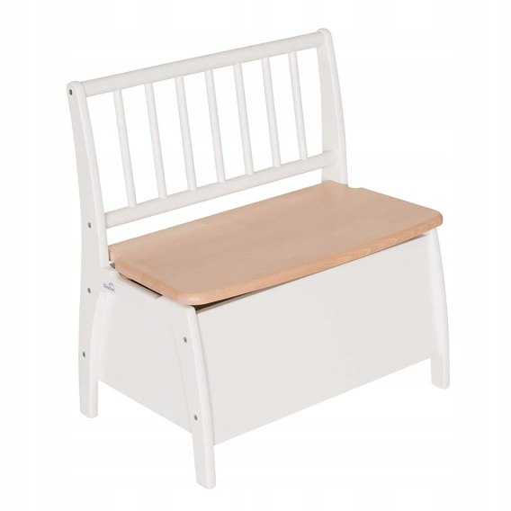Stabilna ławka wykonana z wysokiej jakości materiału, skrzynia do siedzenia z oparciem jest wykonana z wyjątkowo litego drewna wysokiej jakości, co umożliwia maksymalne obciążenie 40 kg.