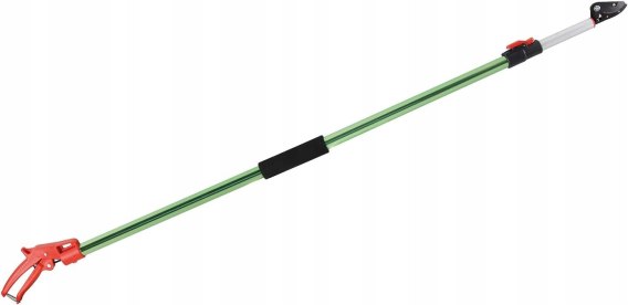 Ostrza wykonane z hartowanej stali. Antypoślizgowa powierzchnia zapewniająca lepszy chwyt po przycinaniu. Idealny do zbioru owoców i przycinania trudno dostępnych gałęzi. Regulowany w zakresie 180° ruchomy drążek z dodatkowym uchwytem