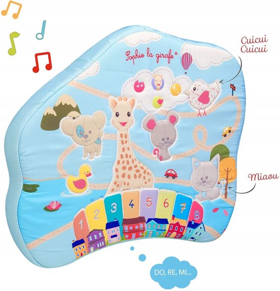 Muzyczna poduszka, wystarczy że dziecko uderzy nogą lub ręką o wybrany kafelek a usłyszy odgłos zwierzęcia lub inny wybrany dźwięk.