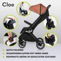 -KOMPAKTOŚĆ: Cleo to wózek dziecięcy, który praktycznie się składa. Można go złożyć jedną ręką za pomocą systemu Auto-Folding bez dużego nakładu siły, składając go samodzielnie za pomocą jednego przycisku. Wymiary produktu w stanie złożonym: 55 x 78 x 108 cm